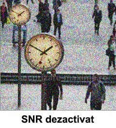 SNR (Signal Noise Reduction - reducerea zgomotului din semnal) este o tehnologie ce permite reducerea zgomotului din cadrul semnlului video. Zgomotul care poate aparea intr-o imagine are cauze multiple ce tin atat de senzor cat si de obiectiv si chiar conectori/cabluri. Procesul de reducere a acestuia poate fi unul de natura hardware si/sau software. Zgomotul este prezent sub forma unor zone distincte pe imaginile inregistrate, motiv pentru care este usor detectabil si poate fi indepartat fara mare dificultate. Problema consta in pierderea de informatie, zonele din care se "scoate" zgomotul fiind umplute cu informatie rezultata din medierea informariilor din zonele invecinate. In specificatiile camerelor video de supraveghere este intalnit si termenul DNR (Digital Noise Reduction) care se refera la o tehnologie software de indepartare a zgomotului. Din considerente de marketing, producatorii introduc in lista caracteristicilor referitoare la reducerea zgomotului termeni precum 3D DNR care ar trebui sa asigure cumparatorul ca exista o functie de reducere a zgomotului imaginilor in miscare nu doar a imaginilor statice cum ar fi cazul camerelor 2D DNR.